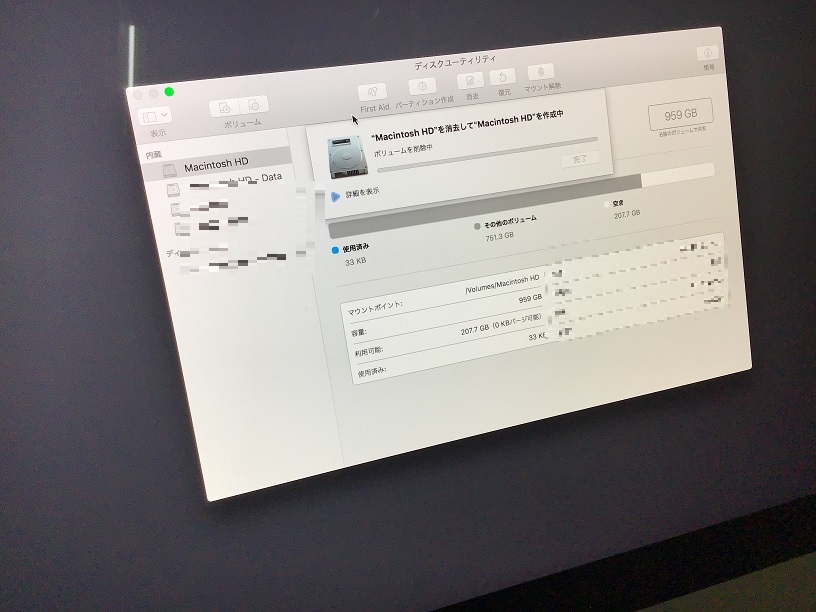 4. しばらく待つと消去が完了します。