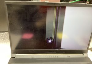宅配で届いたノートパソコンを開封し、ノートパソコンの液晶が割れていることを確認しました。液晶割れは何かの衝撃を与えることで破損したり、キーボードの上に何かを置いたまま、ノートパソコンを閉じることで液晶画面が割れてしまうことがあります。