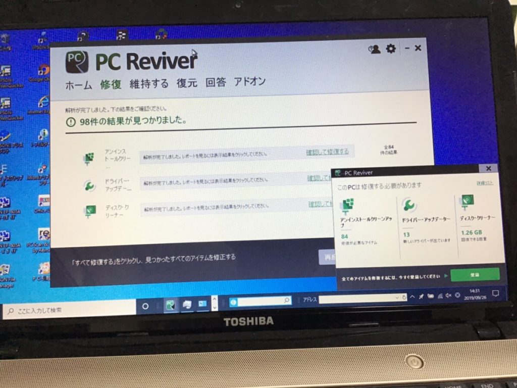 修復画面が表示されてお困りのお客さまよりご依頼。