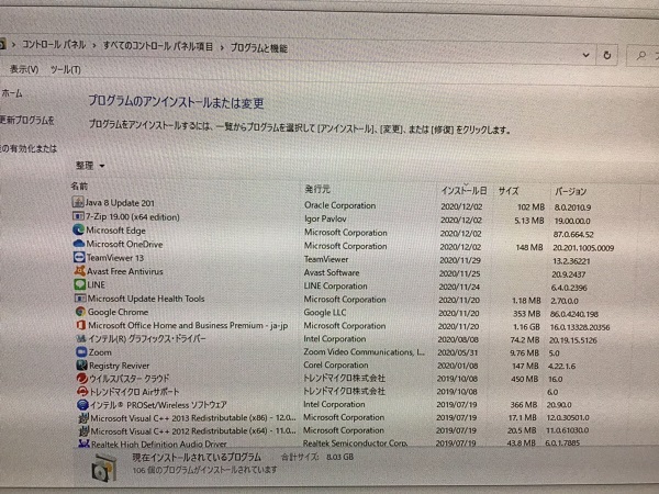 他にも不要なバックグラウンドアプリがありましたので停止し、不要なソフト、不要な一時ファイルの削除などクリーンアップを行って作業完了としました。