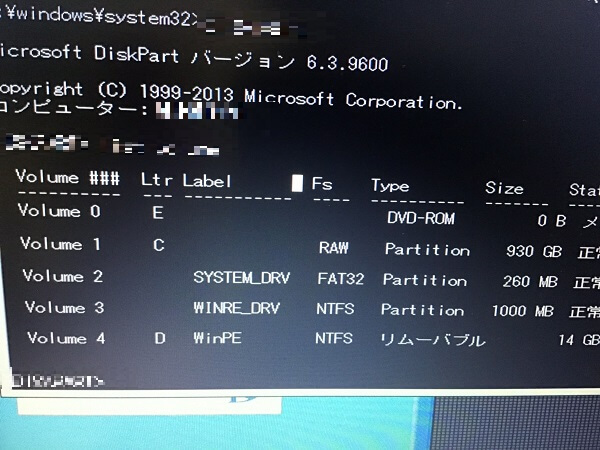 システムパーティションのファイルシステムがRAWになっていた | ||