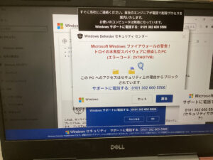 ウイルスにかかったという画面が表示されているとのことでお伺いいたしました。